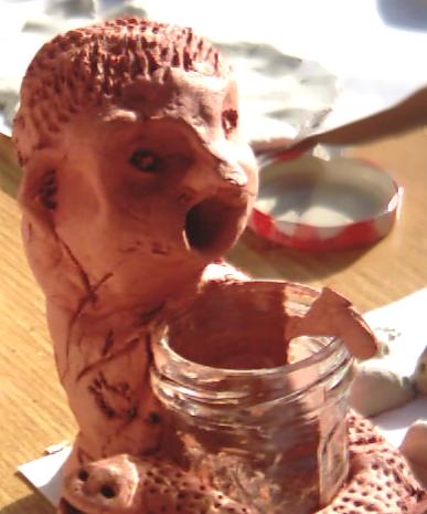 Especially fishermen have small idols of Aaser on a home-altar. These can be splendid pieces of art, in other cases they are rough idols. Any way, they show Aaser with his mouth open, have a small holder for water, and are decorated with plants and animals from the sea. Larger idols can be fish bowls. The picture is an idol from Nest on Roverseiland.